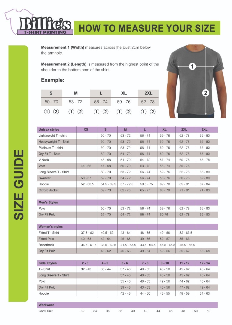 All you need to do is find a garment that you already have that fits well. Lay it down flat and measure just under the armpit across the chest to the other armpit to get the half chest measurement. To get the length, measure just next to the collar down to the bottom of the shirt. Compare the measurements and there you have it!
